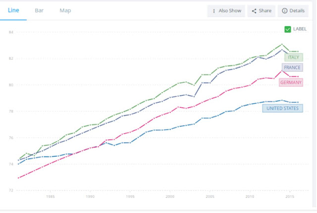 En conséquence, la population de nombreux pays occidentaux semble avoir commencé à suivre la même trajectoire que celle de la population ukrainienne il y a 30 ans. L'espérance de vie a diminué en Occident à partir de 2014.
