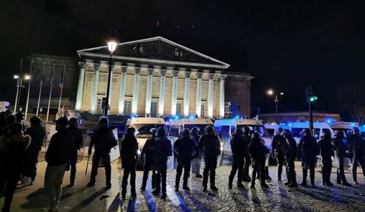 Entourant le Palais Bourbon de ses hommes en armes, Emmanuel Macron qui y dispose pourtant d'une majorité servile à sa botte ne supporte même plus la discussion, et le débat démocratique au sein d'une instance parlementaire républicaine qu'il finit de démanteler.