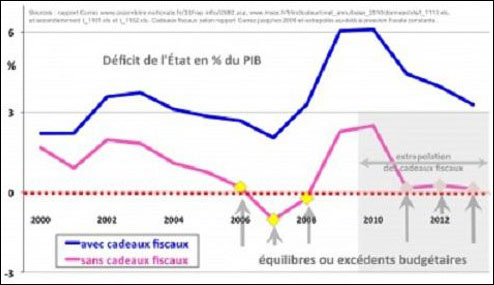 - Le Canard enchaîné du 14 avril 2010 nous apprend que 456 niches fiscales permettent aux nantis d'échapper à l'impôt et aux cotisations sociales. Celles-ci représentaient déjà au total 110 milliards d'euros de manque à gagner pour les recettes de l'État et de la Sécurité Sociale. Soit plus des trois quarts du déficit budgétaire de la France (déficit budgétaire de 150 milliards en 2009).