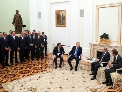 C'est donc sur cette base que le président Vladimir Poutine a reçu au Kremlin, le président Recep Tayyip Erdogan, le 5 mars. Une première réunion, restreinte, de trois heures a été consacrée aux relations avec les États-Unis. La Russie se serait engagée à protéger la Turquie d'une possible partition à la condition qu'elle signe et applique un Protocole additionnel sur la stabilisation de la situation dans la zone de désescalade d'Idleb [2]. Une seconde réunion, également de trois heures mais ouverte aux ministres et conseillers, a été consacrée à la rédaction de ce texte. Il prévoit la création d'un corridor de sécurité de 12 kilomètres de large autour de l'autoroute M4, surveillé conjointement par les deux parties. En clair : la Turquie recule au Nord de l'autoroute qui est rouverte et perd la ville de Jisr-el-Chogour, bastion des jihadistes. Surtout, elle doit appliquer enfin le mémorandum de Sotchi qui prévoit de ne soutenir que l'opposition armée syrienne, censée être démocratique et non pas islamiste, et de combattre les jihadistes. Or, cette « opposition armée démocratique » n'est qu'une chimère imaginée par la propagande britannique. De fait la Turquie devra soit tuer elle-même les jihadistes, soit poursuivre et terminer leur transfert d'Idleb (Syrie), vers Djerba (Tunisie), puis Tripoli (Libye) comme elle avait commencé de le faire en janvier.