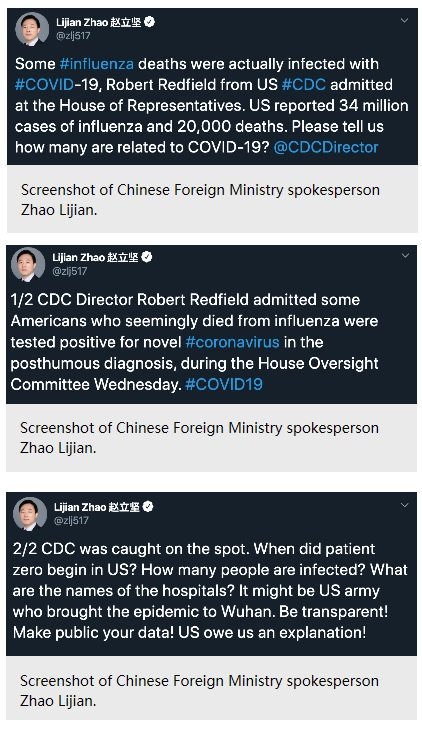 Le ministère chinois des Affaires étrangères a réagi aux déclarations du CDC Robert Redfield, qui a laissé entendre que le virus pouvait provenir des États-Unis.