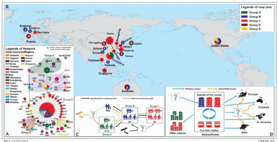 Après avoir recueilli des échantillons du génome en Chine, des chercheurs médicaux ont d'abord démontré de manière concluante que le virus ne provenait pas du marché des fruits de mer, mais de multiples sources non identifiées, après quoi il est arrivé au marché des fruits de mer, d'où il s'est répandu partout. (1) (2) (3)