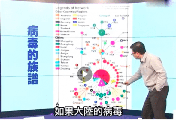 L'homme dans la vidéo est un virologue et pharmacologue de haut niveau qui a effectué une recherche longue et détaillée pour trouver la source du virus. Il passe la première partie de la vidéo à expliquer les différents haplotypes (variantes, si vous voulez), et explique comment ils sont liés les uns aux autres, comment l'un doit avoir précédé l'autre, et comment un type est dérivé d'un autre. Il explique qu'il s'agit de science élémentaire et qu'elle n'a rien à voir avec des questions géopolitiques. Il décrit comment, comme pour les nombres dans l'ordre, le 3 doit toujours suivre le 2.