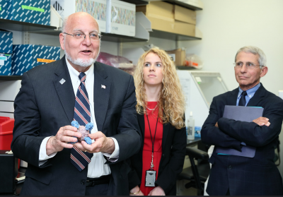 Photo en vedette : Le directeur du CDC, le Dr Robert Redfield, a visité le NIH le 12 juin 2018. Sur cette image, le Dr Redfield visite le Centre de recherche sur les vaccins et s'informe sur le développement d'un vaccin anti-grippe universel. Le Dr Anthony Fauci (à droite), directeur du NIAID, a accompagné la visite. Crédit : National Institutes of Health. Source : flickr.com
