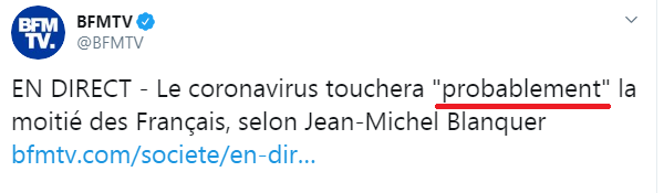 Il semble préférable de mettre à sac les économies nationales.Ce qui n'a jamais été fait pour les épidémies de grippes. Combien de magasins vont survivre à la fermeture ? Comment les gens vont -ils payer leur facture, vivre, s'ils sont au chômage ? Ce sont des questions indécentes face à ce que représente coronavirus! Il faut le combattre. Tous les efforts, tous les esprits ne doivent être occupés que de cela. Quelle indécence d'oser encore manifester contre la réforme des retraites. Quelle indédence, en principe, d'oser encore s'opposer lorsque la patrie est en danger. On vous l'a dit: « probablement » la moitié de la population française peut être touchée Combien de morts « probables » ? Un million, plus ? De la guerre mondiale, nous sommes passés à la guerre globale, celle du coronavirus, avant que l'on en trouve un autre (ils sont légion). Alors quelle mesquinerie d'oser encore remettre en cause la globalisation et la politique de Macron, qui l'intègre à marche forcée dans notre pays.