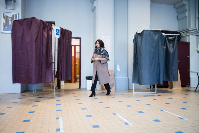 Julien Muguet pour Le Monde, Paris, France le 15 mars 2020 - Agnes Buzyn vote dans le bureau de vote du 5eme arrondissement.