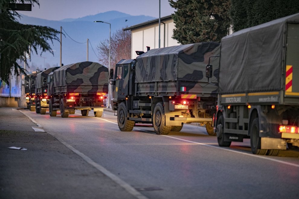 Bergame, il n'y a plus de place : 70 véhicules militaires emmènent les cadavres hors de la région - La Repubblica