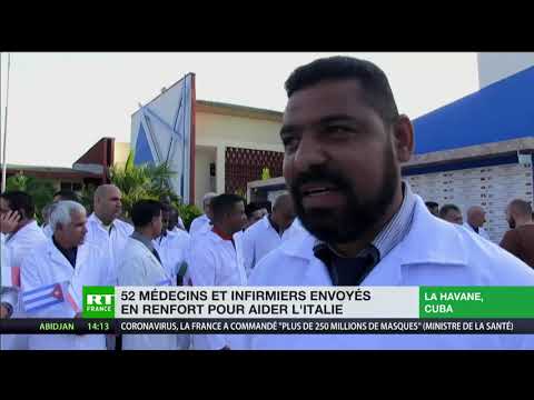 La petite île caribéenne socialiste, très réputée pour sa compétence en la matière a répondu à l'appel de l'Italie en dépêchant le 21 mars en Lombardie, région la plus impactée par la pandémie de Covid-19 en Europe, une équipe de 52 médecins et infirmiers, dont certains ayant combattu l'épidémie d'Ebola en Afrique. L'équipe, composée de 36 médecins, 15 infirmiers et d'un administrateur, «est prête à travailler sans relâche pour soigner et affronter l'épidémie de Covid-19 en collaboration avec les professionnels de la santé» d'Italie, a déclaré son chef, Carlos Ricardo Perez.