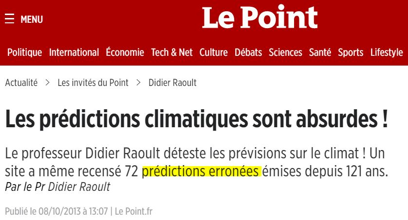 Soulignons, en passant, un autre combat de Didier Raoult depuis des années : démobiliser les populations du combat contre le réchauffement climatique (alors que ce n'est évidemment pas son domaine), comme ici en 2013 ( source) ;