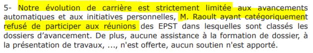 « Début Juin, Didier Raoult, qui avait déjà connaissance de la lettre des 12, apprend les avis négatifs... quant à la labellisation de ses deux unités filles. Il faut préciser que le contenu scientifique des projets est critiqué dans les deux cas et que cet avis négatif n'est pas rendu uniquement sur les problèmes de souffrance des personnels, loin s'en faut. Ces premières alertes provoquent une réaction de la direction de l'URMITE. [NdR : les conseils scientifiques des deux institutions ont rendu des avis défavorables, avis suivis par les deux directions]Les mesures de rétorsion à l'encontre des lanceurs d'alerte commencent le 8 juin. Didier Raoult remet à disposition des tutelles les deux ITA ayant critiqué le plus fortement, lors des visites HCERES, ce qui se passe dans l'URMITE. Des propos menaçants auraient été tenus vis à vis des 12. Le directeur intervient en assemblée générale pour moquer les avis rendus par la section 27 du CNRS et la CSS de l'INSERM, dénoncer l'action des 12 ITA et dire qu'il n'en resterait pas là. Dans ces conditions, pour beaucoup de personnes, la peur de témoigner devant les CHSCT se développe. » [CGT]