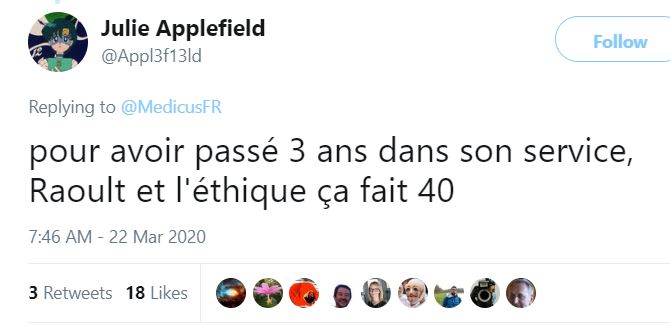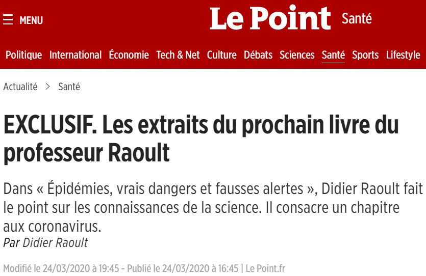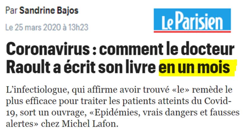 Nous analyserons donc dans le prochain billet l'essai de Raoult - mais nous pouvons déjà vous dire que son professionnalisme et son éthique sont à la auteur du personnage que nous venons de décrire longuement dans ce billet.