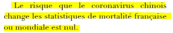 « Général de la santé » ayant contribué à plusieurs reprises à diminuer la mobilisation de la population en plaine offensive du coronavirus - nous verrons jusqu'où plus tard - il a participé à notre défaite face à la propagation du virus. Espérons cependant qu'il participera à notre victoire finale sur sa mortalité. Nous le verrons dans le prochain billet, consacré à son essai rendu public le 16 mars.
