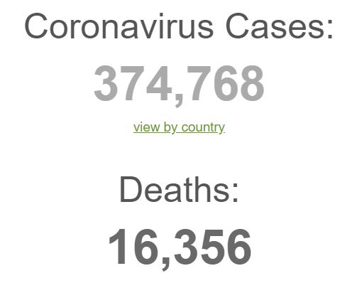 Commentaire OB : Raoult doit donc considérer que nous avons à faire a une « fake maladie ». Qui est portant en croissance exponentielle, qui a déjà contaminé 375 000 personnes et tué 16 000 personnes ( source)