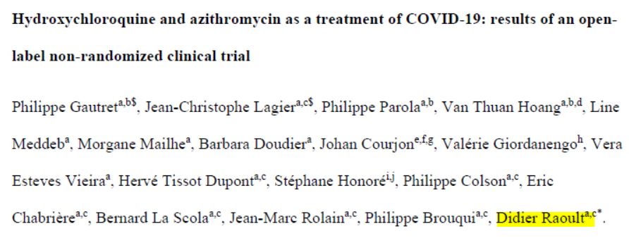 Précisons que, a priori (nous allons confirmer), l'étude chinoise n'avançait apparemment pas de chiffres précis, se contentant de dire que ça pouvait aider ; mais ce n'était pas un essai clinique classique pouvant le prouver. Raoult a donc surtout dit :