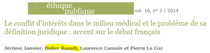 Mais pas de souci, Raoult a même cosigné en 2014 un xeme un papier, cette fois sur le conflit d'intérêts :