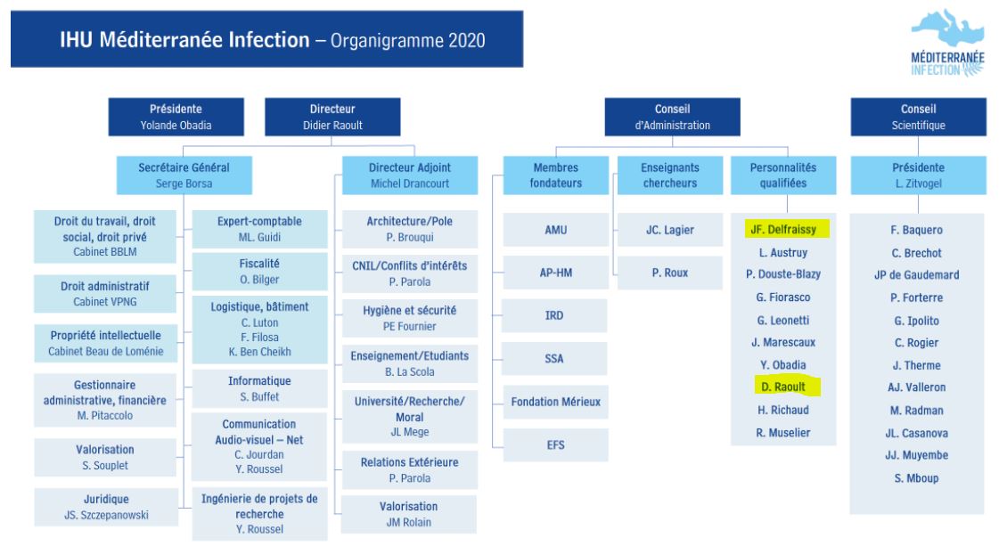 En réalité, il est peu surprenant de le voir à cette place, car le Président du conseil scientifique Jean-François Delfraissy appartient lui aussi au conseil d'administration de l'IHU IM.