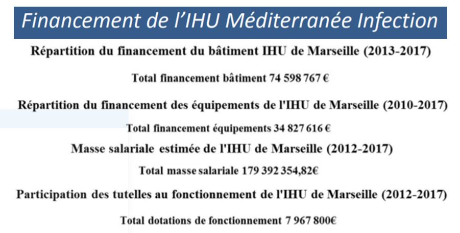 Opération de BTP de 75 millions d'euros, course aux partenariats privés, gouvernance calamiteuse, étonnants soutiens politiques très appuyés : il serait vraiment rassurant pour le contribuable que le préfet des Bouches-du-Rhône demande à la Cour des Comptes régionales un audit approfondi de l'IHU-IM, et le ministère un nouveau rapport de l'IGAS.
