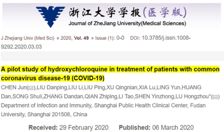 Son équipe a réalisé un essai d'hydroxy-chloroquine sur 30 malades du Covid-19 en Chine, n'étant pas atteints de forme sévère. Elle a été soumise à publication le 26 février et acceptée le 6 mars. Elle est disponible ici (anglais et chinois) :