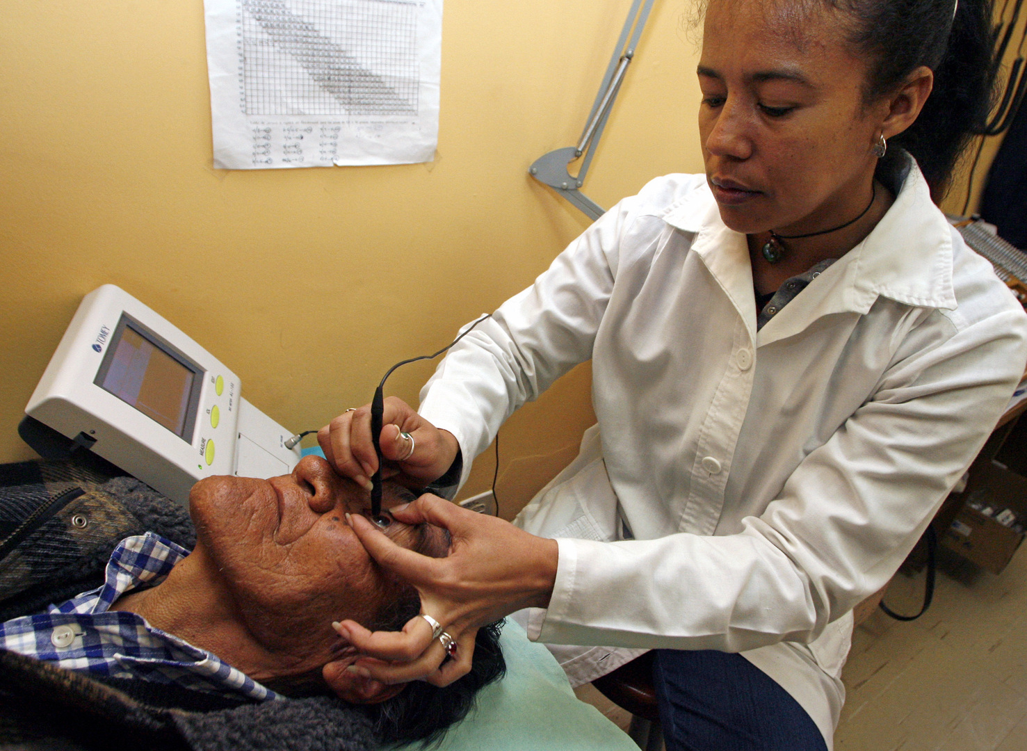 © David Mercado Source: ReutersUn médecin cubain bénévole examine un patient bolivien dans le cadre du programme coopératif "Plan Milagro" dans un hôpital public, à La Paz le 1er juin 2006.