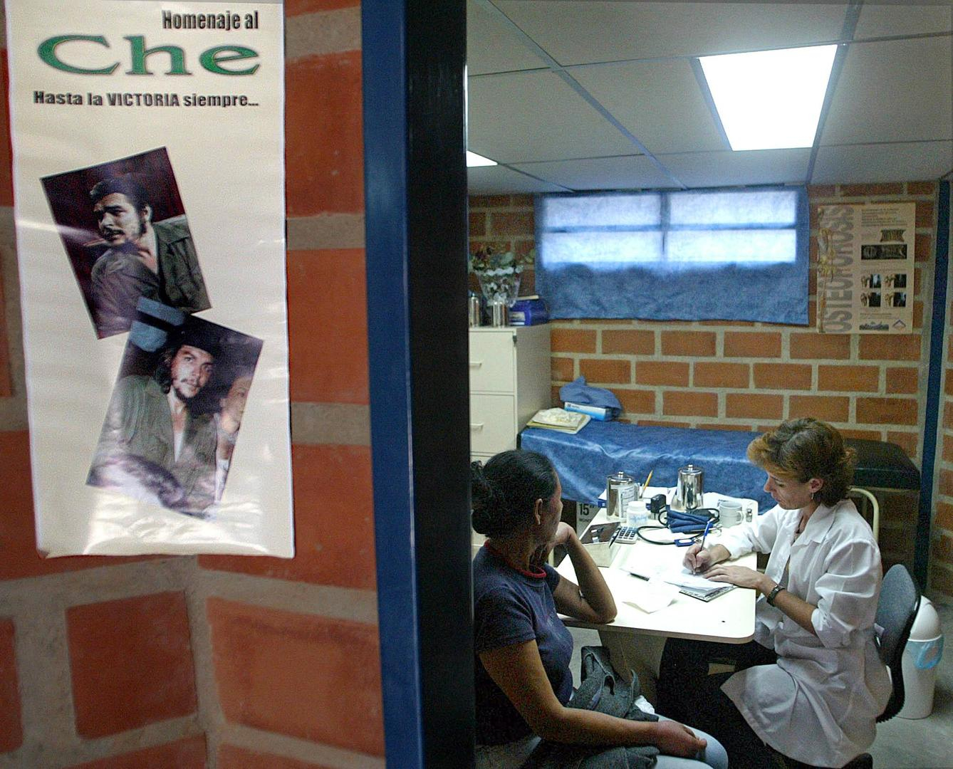 © Andrew Alvarez Source: AFPLa médecin cubaine Maricela Perez, du programme "Barrio Adentro", créé par le président vénézuélien Hugo Chavez, en consultation avec un patient le 22 février 2005 dans un quartier densément peuplé de l'ouest de Caracas.