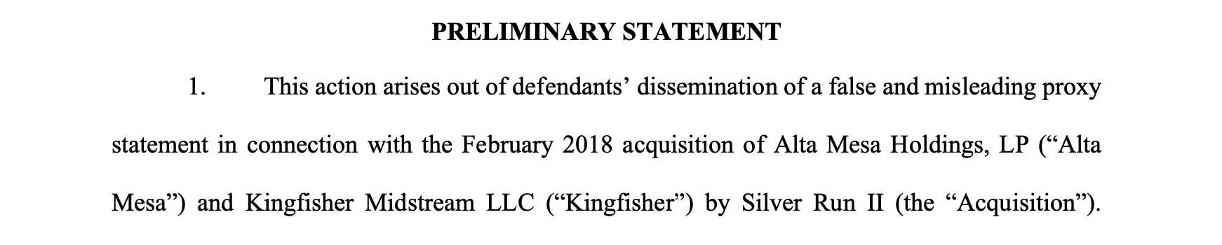 Un procès intenté par le Fonds national de retraite des plombiers et des tuyauteurs prétend que la procuration pour Alta Mesa contenait des informations matériellement fausses et trompeuses. Ce dépôt présente de nombreux faits à l'appui de cette affirmation.