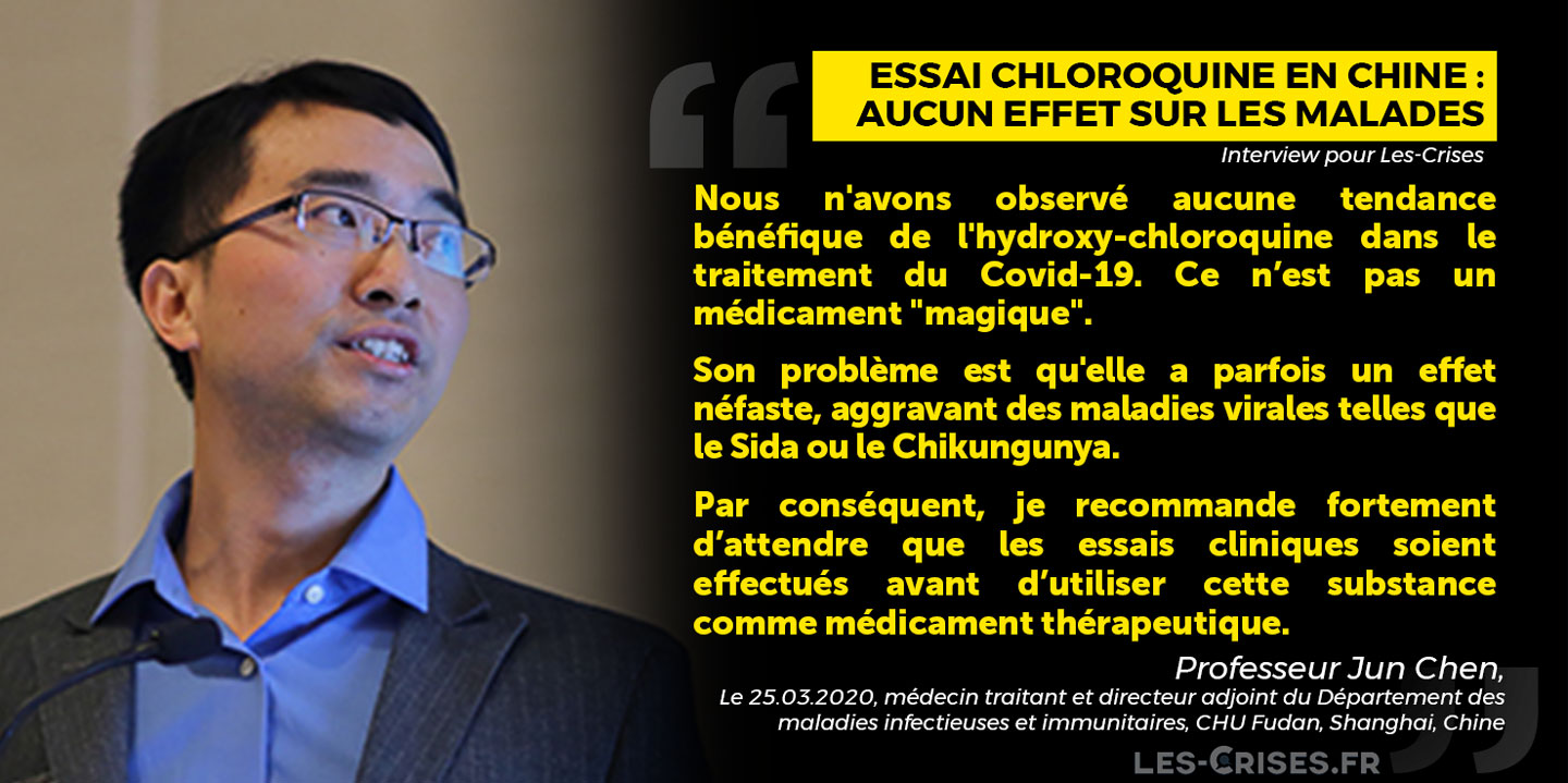 - que la Chine a aussi publié une étude ne montrant aucune efficacité de la chloroquine dans un petit essai ;