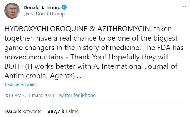 Ainsi, gardons notre calme, réalisons des essais cliniques robustes chez nous, choisissons le meilleur traitement et écoutons nos autorités médicales. La priorité actuelle, c'est de rester au maximum chez nous, et de ne pas attraper ce virus ! #RestezChezVous