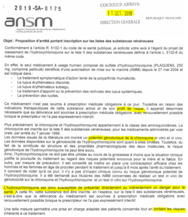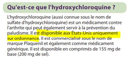 Insistons : « L'hydroxy-chloroquine est donc susceptible de présenter directement ou indirectement un danger pour la santé. (octobre 2019) » Donc, déjà, demandez conseil à votre médecin traitant, ne vous auto-médicamentez pas tout seul.