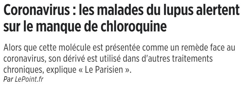 Ce qui est le plus stupéfiant dans cette affaire, c'est que beaucoup de personnes pensent qu'il y aurait une volonté de ne pas utiliser la chloroquine (pardon « le protocole du Dr Raoult »™) dans une sorte de complot des élites.
