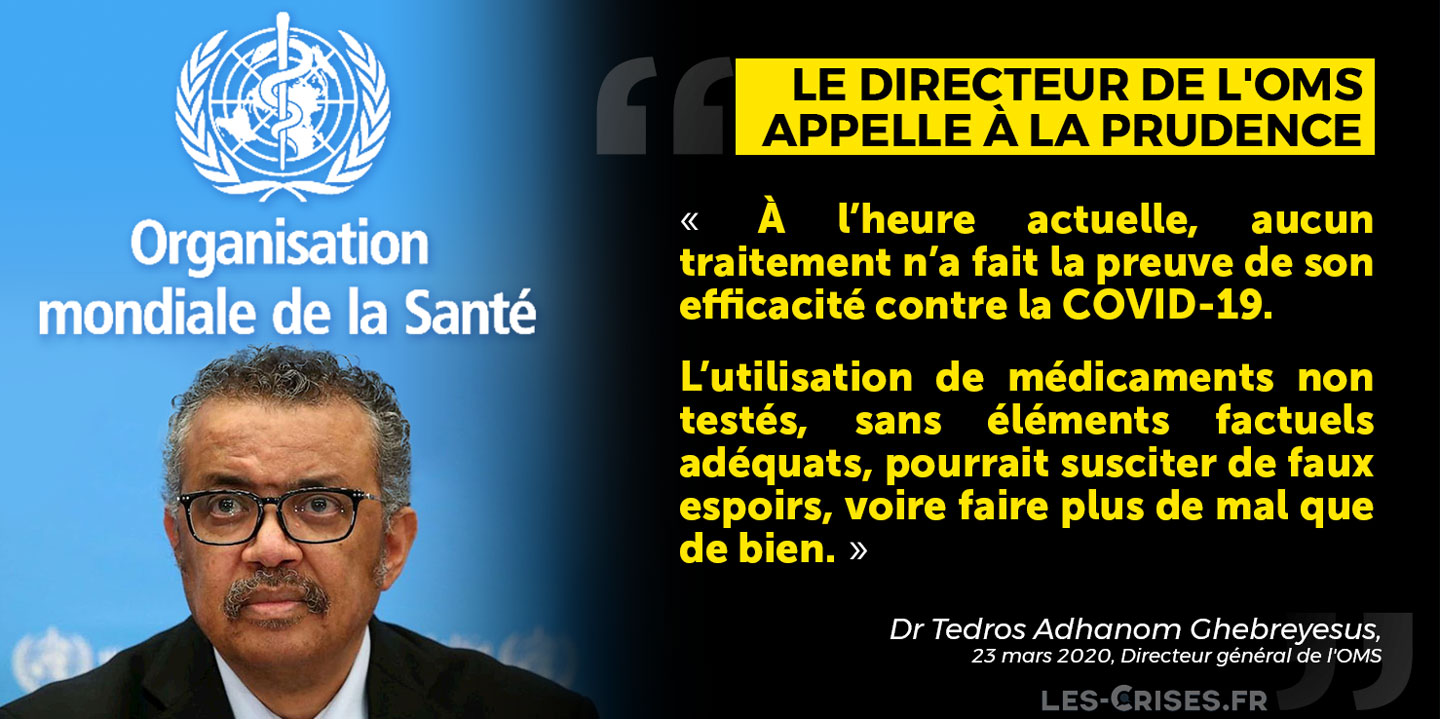 Cela est dramatique, car cela freine la Science - il faut vraiment plus de calme sur ces sujets. Les polémiques violentes qui ont cours dans notre pays, avec une obsession sur un seul traitement, sont absentes dans la plupart des autres. Le Directeur de l'OMS, le docteur Tedros Ghebreyesus, répond d'ailleurs ainsi aux initiatives du type de celle de Raoult :