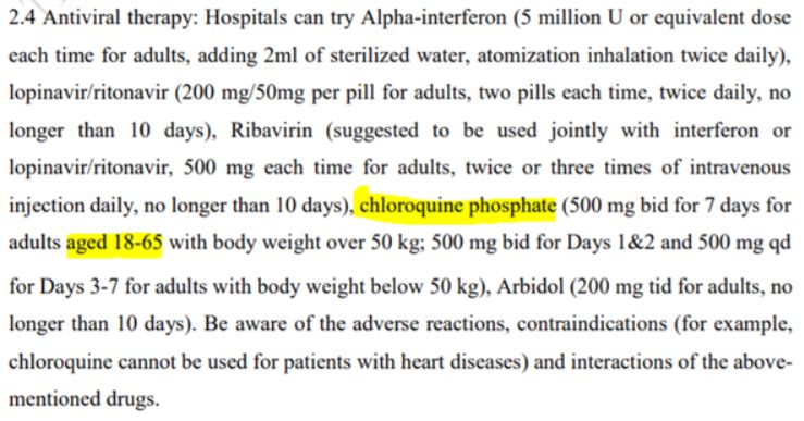 - que la Chine ne traite plus les plus de 65 ans à la chloroquine ;