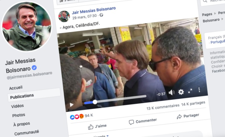 Des intentions louables, mais qui ont leur face sombre : l'excès de zèle... quitte à censurer des représentants élus. Ainsi, Facebook, Instagram et Twitter ont supprimé deux vidéos des comptes du président brésilien, Jair Bolsonaro, qui le montraient en train de prendre des bains de foule à Brasilia, dimanche. Un comportement qui contredit les recommandations de son propre ministre de la santé : celui-ci préconisait la veille l'éloignement physique pour limiter les risques de propagation du virus ! Mais Bolsonaro n'en a cure : climato-sceptique notoire, l'ex-militaire marqué à l'extrême droite montre également des symptômes de « corona-scepticisme », lui qui considère ce virus comme une « petite grippe » qui ne saurait justifier de perturber l'économie brésilienne.
