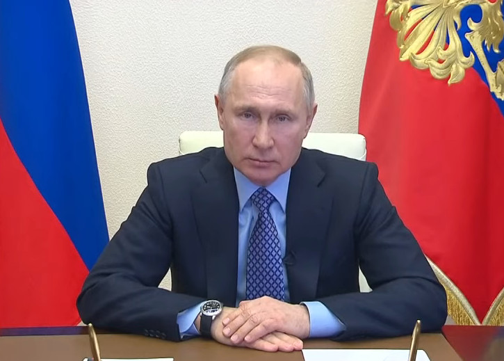 Sixth, just like the Empire itself, NATO and the EU are also in free fall, both clueless as to what to do and in a panic about doing anything proactive. Besides the flag-waving Idiot-in-Chief, I also took the time to listen to both Macron and Merkel. They are both in a full-freak-out mode, Macron speaks over and over about a "war" while Merkel declared that the pandemic is the most serious challenge facing Germany since WWII! Still, the most amazing contrast to the USA might well be Russia. Putin has made several special appeals to the Russian people, and his mood was both clearly determined and clearly somber. I took this screenshot of Putin's latest message to the Russian people, and see his expression for yourself: