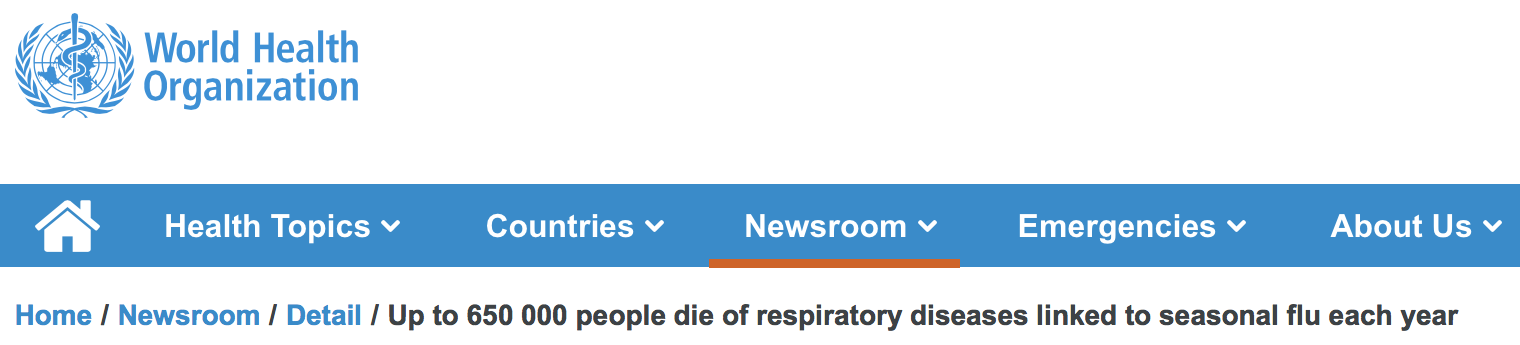OMS: sujets de santé, pays, salle de presse, urgences, à propos de noushome/newsroom/detail/ jusqu'à 650 000 personnes meurent chaque année de maladies respiratoires liées à la grippe saisonnière