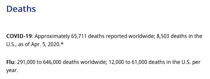 Selon l'OMS et John Hopkins Medicine (voir ci-dessous), les risques de mourir de la grippe sont plus élevés que pour la COVID-19.
