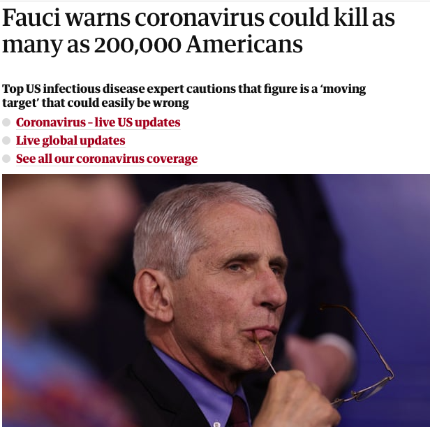 Capture d'écran de The HillFauci estime que le coronavirus pourrait tuer jusqu'à 200 000 Américains