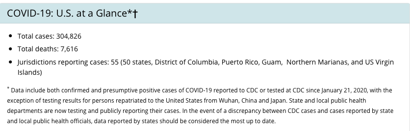 COVID-19 : Les États-Unis en un coup d'œil*+.-total des cas : 304,826