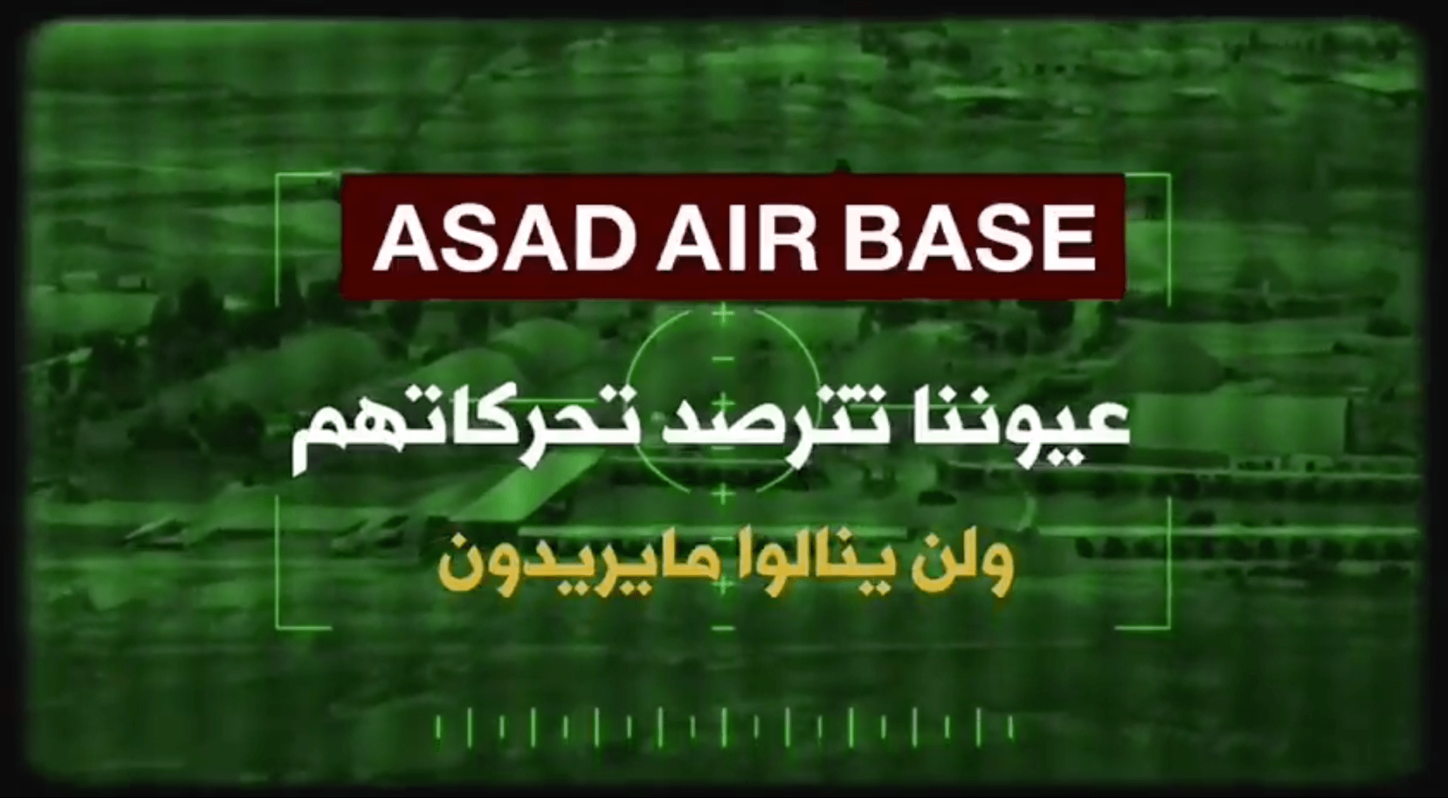 Cette vidéo a été diffusée de l'extérieur de la base, car elle montrait la conduite d'une voiture le long des murs de la base américaine d'Ain al-Assad, signalant ainsi la facilité de mouvement du groupe malgré les mesures de sécurité déployées le long de la route.
