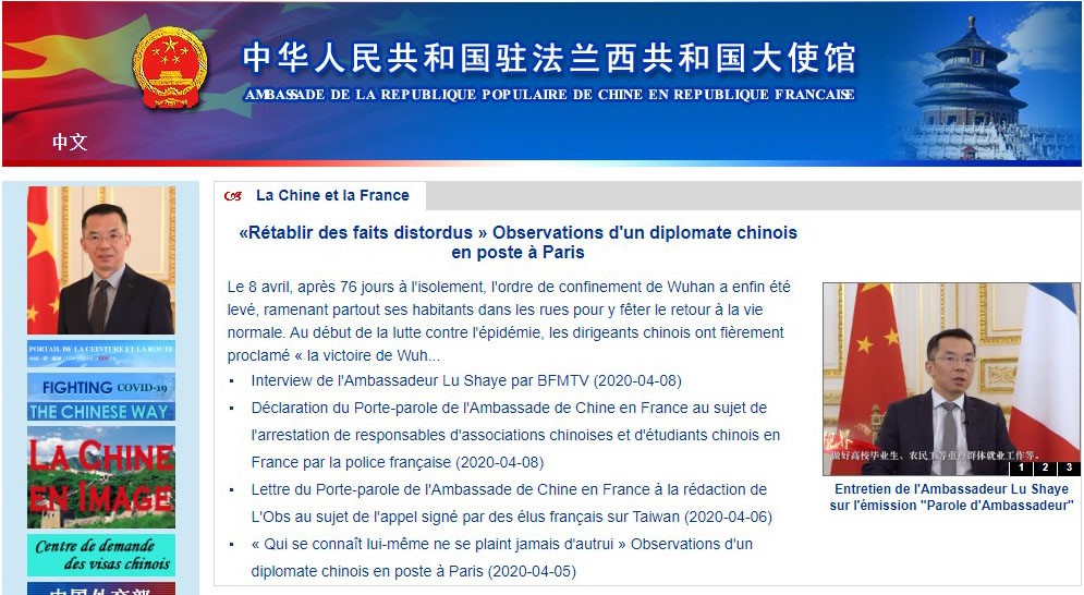 Intitulé « Rétablir des faits distordus - Observations d'un diplomate chinois en poste à Paris », l'article de la diplomatie chinoise commence par rappeler qu'après deux mois et demi de confinement à Wuhan, la Chine était « sortie victorieuse de son combat contre l'épidémie de coronavirus ».