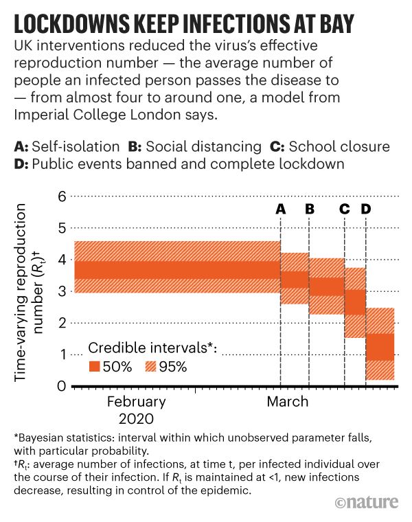 Le confinement permet d'éviter les infections : Un modèle montre que les interventions britanniques ont réduit la reproduction efficace du virus.
