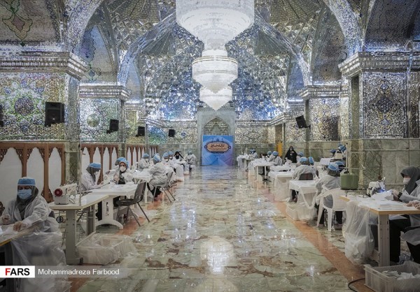 In the holy shrine of Shah Cheragh, the son of Imam Mousa Kazem's (AS), 7th Shia Imam, in the city of Shiraz, the capital of Fars province, Southern Iran, people produce more than 3,000 masks a day to combat coronavirus. Source: FarsNews
