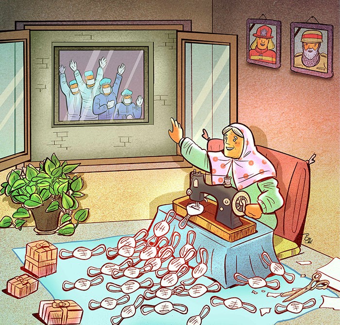 De plus, malgré la chute de la confiance dans le gouvernement, la société civile iranienne a réussi à se mobiliser et à coopérer efficacement. Des groupes issus de classes sociales et de positions idéologiques différentes se sont regroupés autour d'une campagne visant à mettre en commun les ressources humaines et financières dans la lutte contre le virus. Alors que le gouvernement s'est engagé à couvrir 90 % des frais médicaux pour chaque patient atteint de covid-19, ces militants ont collecté des fonds, se sont procuré les respirateurs essentiels auprès de cliniques privées et ont augmenté la production de kits de dépistage, de masques, de blouses et de respirateurs pour soutenir les hôpitaux publics spécialement désignés. Un hôpital de 300 lits, entièrement équipé, a récemment été construit dans le cadre d'une campagne « Le secteur privé pour le bien public ». Des capitaux sont également venus de la diaspora iranienne, malgré les entraves venant des sanctions financières. En plus de ces efforts de la société civile, l'armée a libéré un total de 4 000 lits de sanatorium, avec des lits d'hôpital attenants pour les soins d'urgence, et le Corps des gardiens de la révolution a construit de petits hôpitaux dans des régions éloignées du pays.