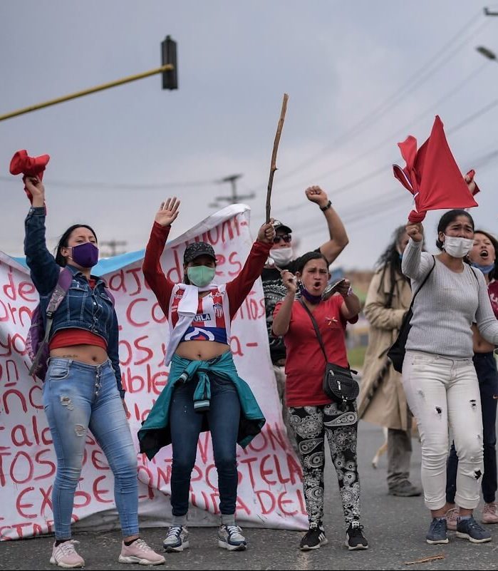Des habitants des quartiers les plus pauvres, tel que Ciudad Bolivar à Bogota, ont dénoncé le fait que le gouvernement n'ait pas tenu ses promesses de soutien aux secteurs les plus pauvres. Ainsi, ils avancent qu'ils ne peuvent pas rester à la maison puisqu' ils n'ont aucun moyen de nourrir leur famille.