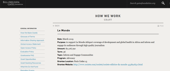 Le lien qui m'a servi à sortir les données de la fondation Gates a été publié par les Moutons enragés. gatesfoundation.org