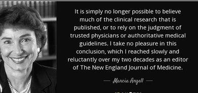 « Il n'est tout simplement plus possible de croire une grande partie de la recherche clinique publiée, de se fier au jugement des médecins de confiance, ou à des directives médicales faisant autorité. Ça ne m'amuse pas d'en arriver à pareilles conclusions, mais j'ai dû y arriver lentement et à contre cœur pendant les vingt années que j'ai travaillé comme éditrice du New England Journal of Medicine. »
