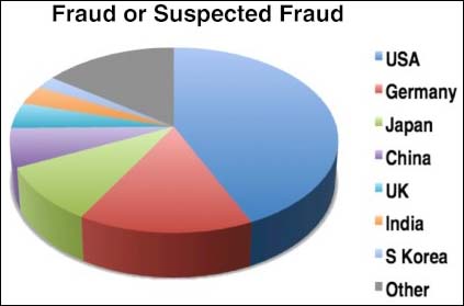 Deux études publiées l'an dernier dans PLoS One et dans les PNAS ont analysé l'origine géographique des chercheurs fraudeurs. Il ressort que les Etats-Unis, l'Allemagne, le Japon et la Chine sont les pays où travaillent le plus grand nombre de scientifiques adeptes de mauvaises pratiques de recherche. À eux quatre, ces pays, qui ont une longue tradition de recherche scientifique, réunissent les trois-quarts des rétractations pour fraude.
