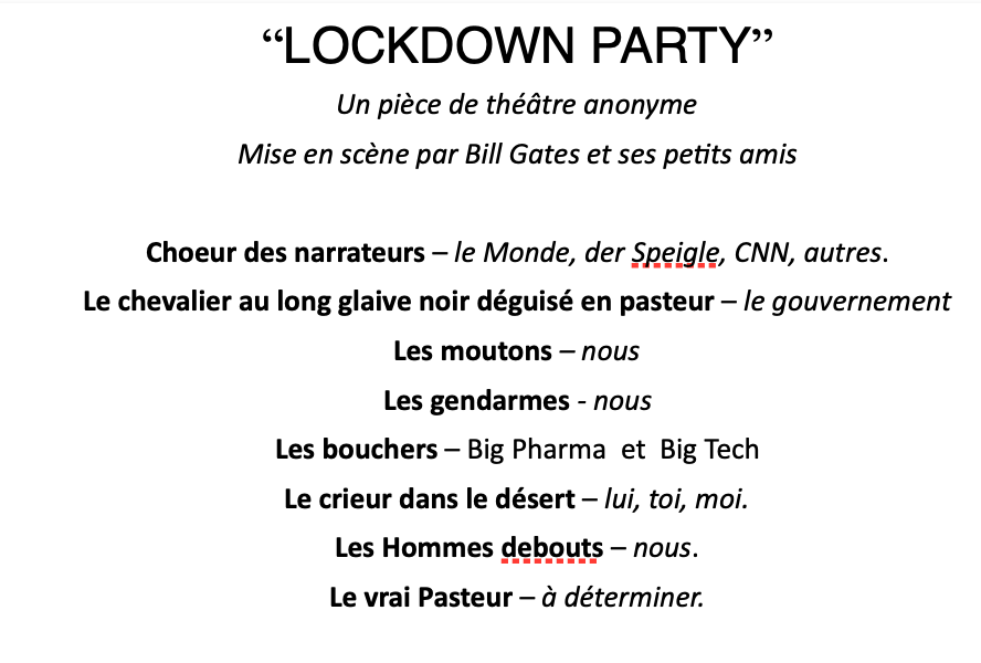 Commençons donc par une question: Si la pandémie létale ne l'était pas, alors que penser du confinement mondial ?