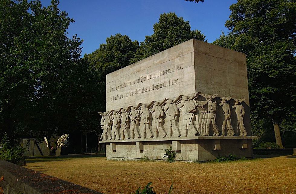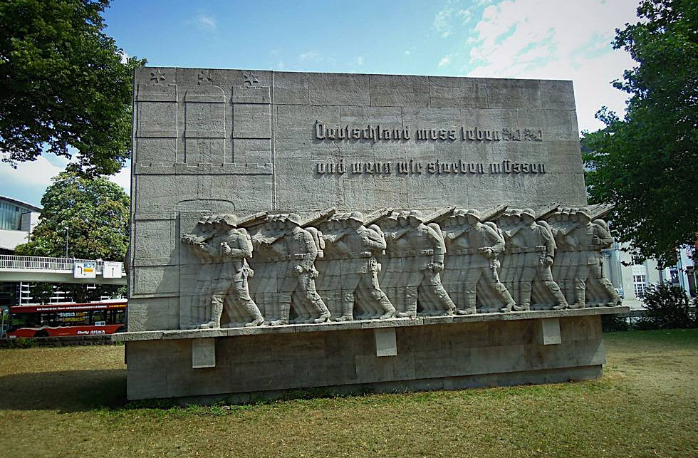 Un exemple célèbre est le mémorial du 76e régiment d'infanterie à Hambourg, en Allemagne. Pendant la première guerre mondiale, le 76e avait été recruté à Hambourg et avait combattu avec de grandes pertes sur le front occidental. Un mémorial pour ses soldats n'a été construit qu'en 1936, lorsque les nazis régnaient en Allemagne.