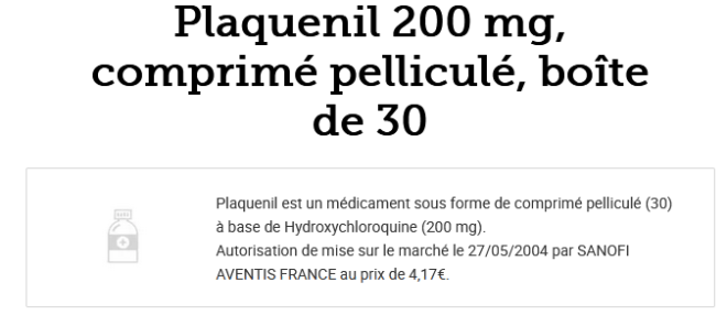 Et voici à titre comparatif le prix du Plaquenil: