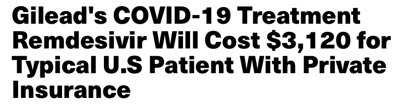 Qui pourra s'offrir le Remdisivir ? 500 000 doses de Remdesivir sont envisagées à 3 200 dollars par patient, soit 1,6 milliard de dollars (voir l'étude d'Elizabeth Woodworth)